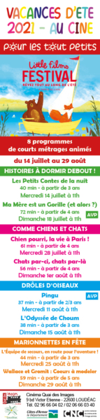 A partir du mercredi 14 juillet, un programme de films conçus pour les tout-petits, à partir de 3 ans avec 2 films en Avant -première :